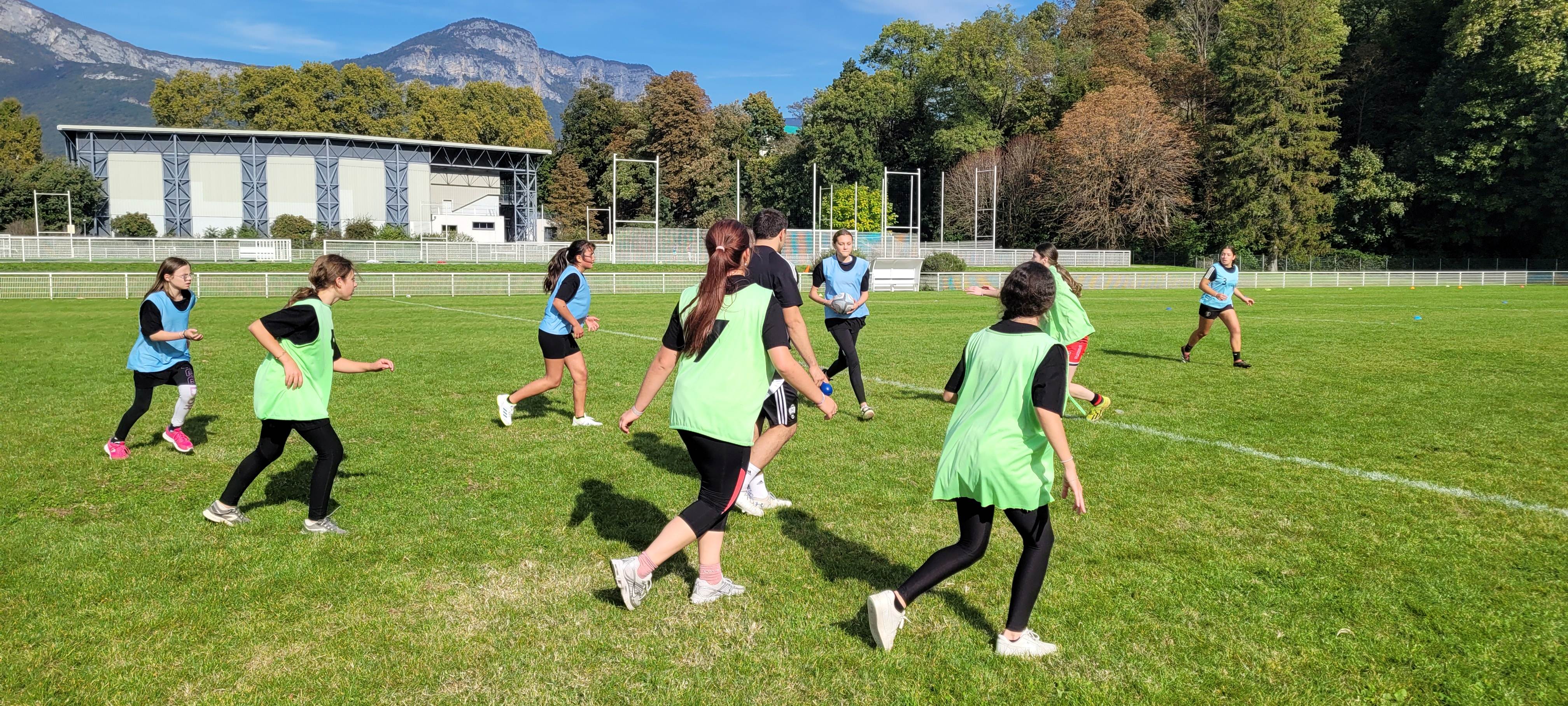Superbe après-midi ensoleillée au lycée Monge à Chambéry. Au programme: yoga, savoir-rouler, hand-ball et rugby touch !!